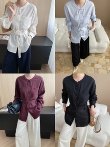 司南 法式设计感 天丝莱赛尔气质圆领收腰显瘦通勤风衬衫 SN8072