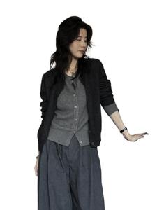 风灰色假两件针织开衫女韩系慵懒秋冬内搭毛衣外套设计感拼接上衣