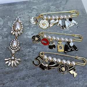 镶钻珍珠数字5帽子花朵人像胸针欧美复古个性别针小众高级感配饰