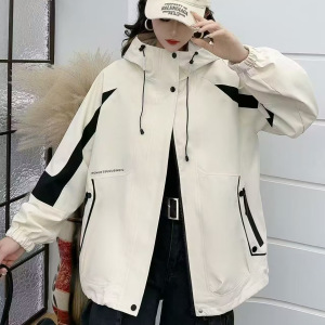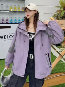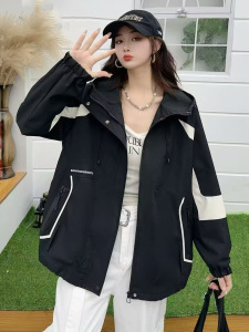 美式复古撞色拼接冲锋衣外套女2025秋季新款时尚百搭显瘦夹克上衣