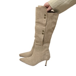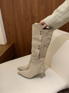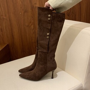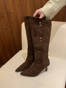 MIKE 辣妹!高跟绒面棕色堆堆中筒长靴女靴子2025瘦瘦西部牛仔靴