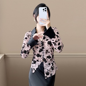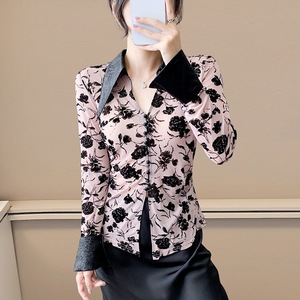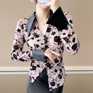 2025秋冬设计感女人味衬衫优雅V领收腰显瘦植绒网纱长袖上衣潮