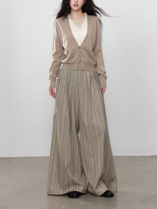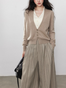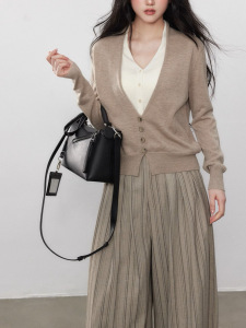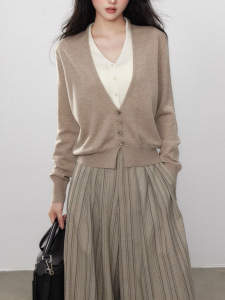 气质松弛感假两件V领针织衫秋季新款叠穿设计毛衣开衫
