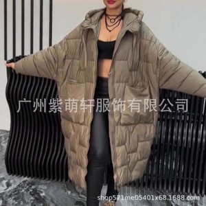 2025欧美INS热卖连帽宽松薄款棉服外套女冬季新款轻薄压纹保暖外