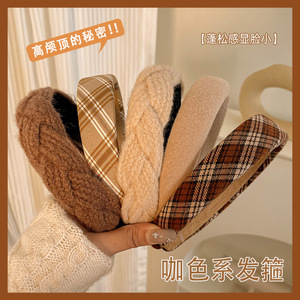 6#咖色格子发箍-3cm