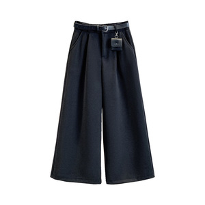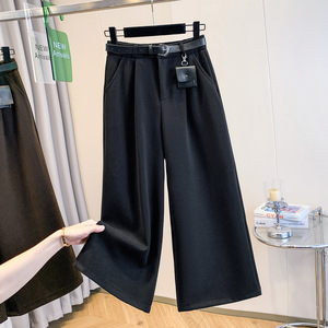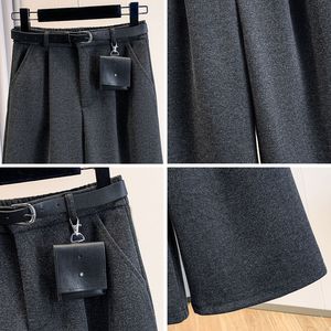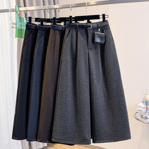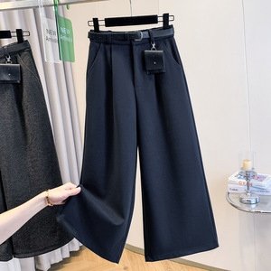 复古高腰毛呢阔腿裤女2025秋冬韩系百搭宽松直筒小个子七八分裤潮