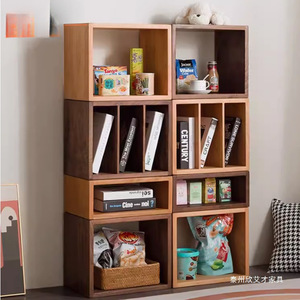实木小书柜组合柜简约现代置物柜储物书架格子边柜客厅卧室床头柜