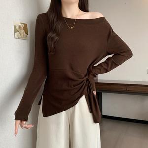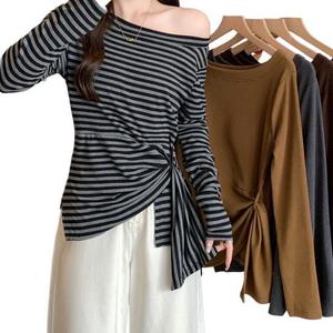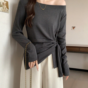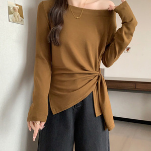 2025年新款洋气绑带秋季设计感斜领打底T恤老钱风百搭ins长袖小众