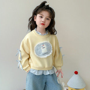 女童卫衣春秋2025新款儿童洋气卡通秋季女宝宝时髦假两件秋装上衣