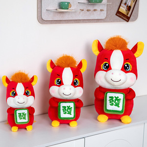 新款马年吉祥物公仔装饰摆件发财麻将马卡通毛绒玩偶新年礼物娃娃