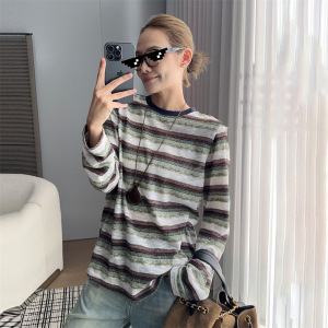 MY 绿野仙踪针织衫 撞色条纹休闲宽松圆领长袖上衣