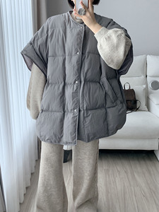 现huo 韩式复古设计感无袖棉衣马夹外套