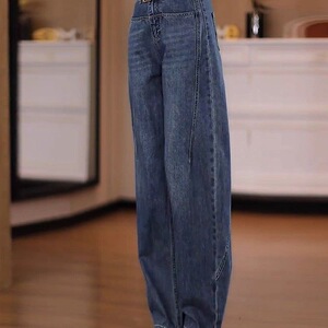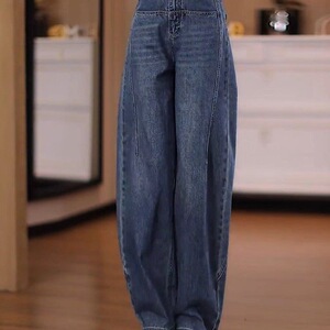 时尚百搭宽松阔腿裤裤牛仔2025年新款裤女弯刀香蕉高腰显瘦新中式