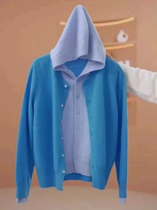 韩版连帽假两件针织衫女外套2025秋冬新款设计感时尚宽松毛衣开衫