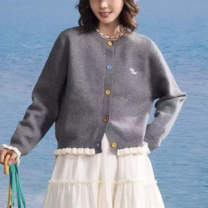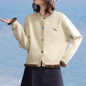 2025韩版新款学院风圆领针织开衫女时尚百搭减龄毛衣外套上衣