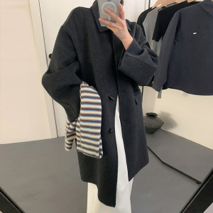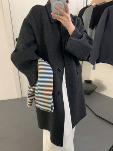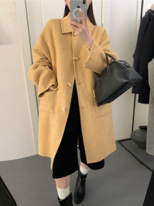 2025秋冬新款韩系牛角扣双面羊绒大衣女中长款赫本风羊毛呢外套