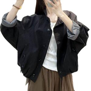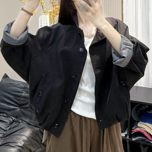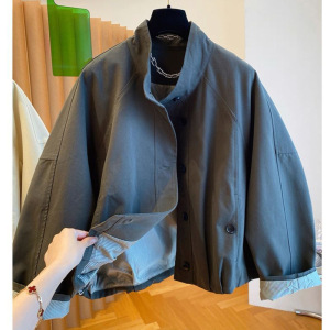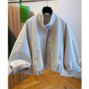 立领夹克外套女新款宽松休闲条纹短款风衣上衣