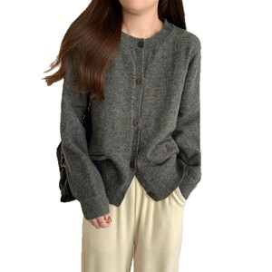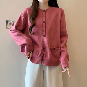 跨境软糯慵懒风毛衣外套女秋冬新款宽松长袖宽松简约针织开衫上衣