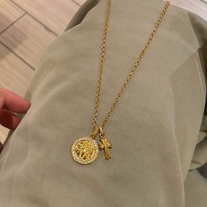 小红书爆款金色点钻罗盘十字架项链轻奢百搭颈链国风高级一件代发
