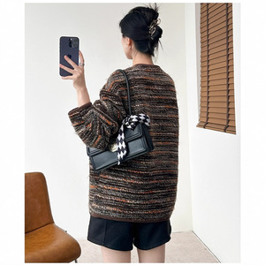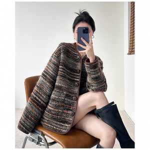 咖色轻奢条纹渐变小香风外套女秋2025新款美式氛围感chic百搭上衣