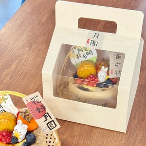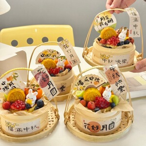 2025中秋节蒸笼竹篮手提篮蛋糕包装盒月饼小兔子装饰烘焙摆件插件