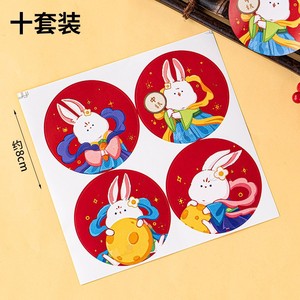 贴纸中秋兔奔月红底40贴