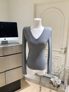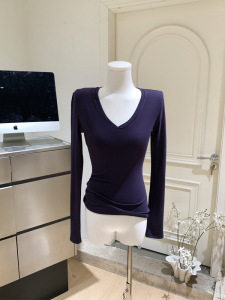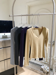 槿一 糯糯多色V领长袖打底衫百搭T恤基础日常显瘦上衣复古通勤风