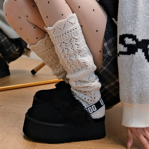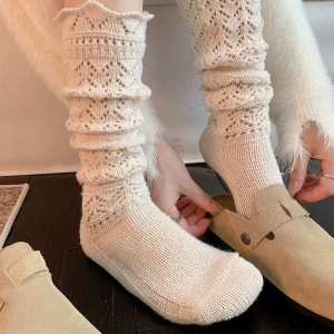 日韩复古堆堆袜子女秋冬保暖针织镂空小腿袜韦雪同款毛线花边长袜