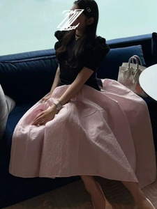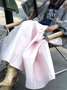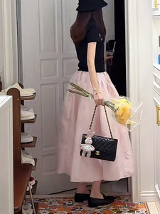 新款气质a字裙粉色半身裙女夏季设计高级感蓬蓬裙显瘦花苞裙半裙