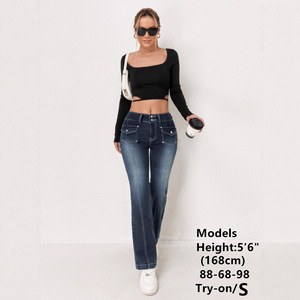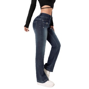 跨境微喇牛仔裤女2025中腰爆款弹力潮流跨境双扣拼接设独立站欧美