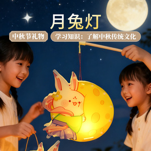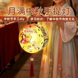 中秋节木质彩印手工灯笼制作diy材料包木质手提儿童益智玩具礼物