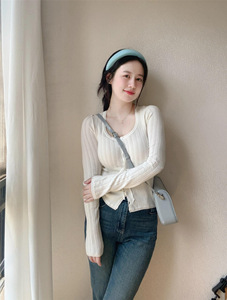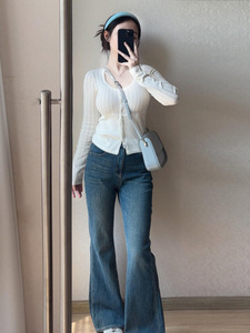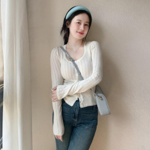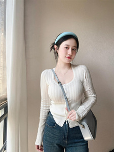 针织衫女2025秋季新款法式纯欲白色气质修身开衫长袖打底衫上衣