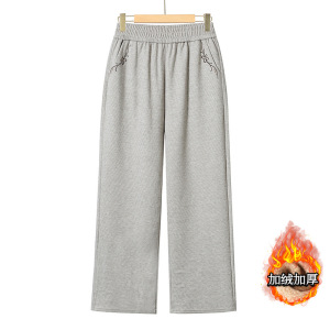 妈妈裤加绒加厚长裤子中老年人奶奶洋气宽松休闲直筒阔腿裤女裤冬