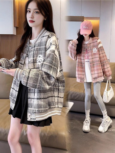 女童秋装小香风长袖外套2025新款中大童洋气单排扣棒球服时髦开衫