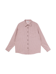 你好卡农 韩系雾面感条纹衬衫女春季新款宽松设计感长袖粉色衬衣