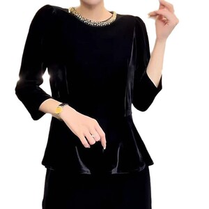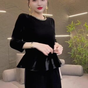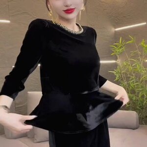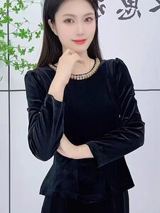 一件代发直播爆款2025秋季新款时尚圆领设计感丝绒长袖打底衫上衣