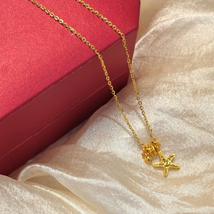 S925纯银金珠跑环碎冰冰海星项链手链女复古轻奢中古风小红书爆款