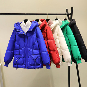 亮晶晶羽绒棉服女2025冬新款韩版中长款宽松加厚棉衣女连帽面包服