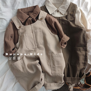洋气百搭2025儿童森系复古背带裤男女宝宝春秋季连体裤宽松棉耐用