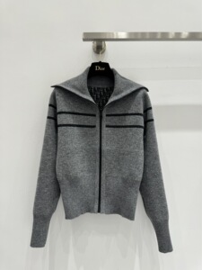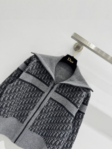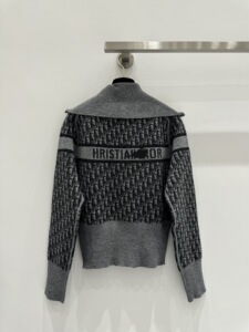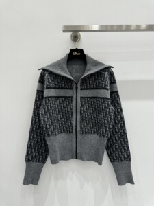 高版本CD家经典老花满印提花双面穿翻领长袖针织开衫