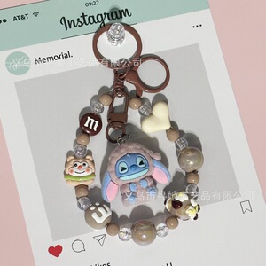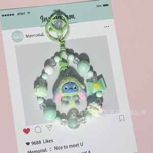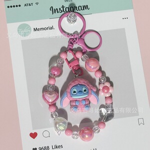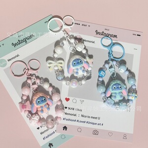卡通值绒史迪仔包包串珠链条挂饰直播萌粒公仔学生钥匙扣挂件配饰