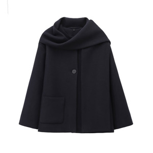 跨境外贸批发秋季新款ZA女装欧美风混纺配围巾大衣外套 2095141