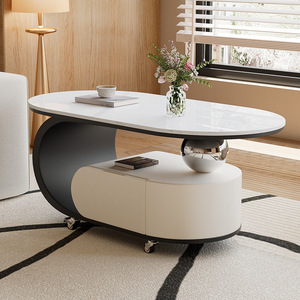 奶油可移动轻奢意式岩板茶几客厅家用小户型高级现代简约新款组合