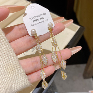 设计感树叶流苏显瘦耳环轻奢高级感网红耳坠银针长款叶子锆石耳饰