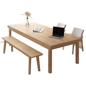 【家庭组合】原木色200*80实木会议椅*2+长条凳