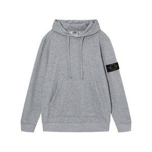 跨境高质品STON石头秋冬纯色臂章带帽卫衣男女同款宽松长袖帽衫潮