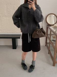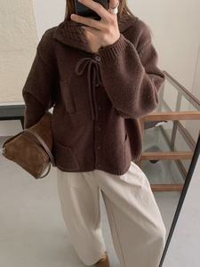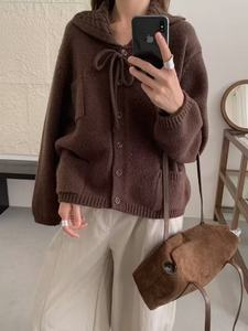 设计感连帽三口袋针织开衫女2025秋冬新款韩版宽松软糯纯色毛衣女