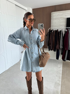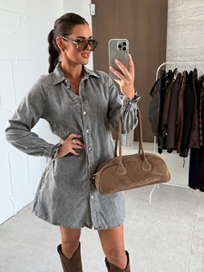 2025亚马逊跨境欧美 时尚休闲纽扣显瘦长袖女式牛仔连衣裙89241