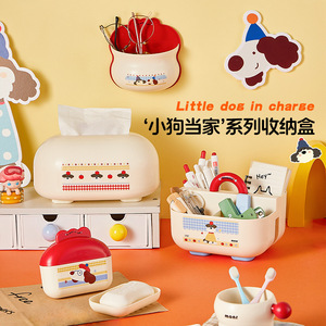 桌面纸巾盒卡通小狗家用壁挂式卫生纸收纳盒客厅茶几抽纸盒收纳盒