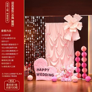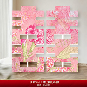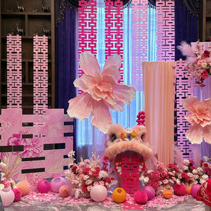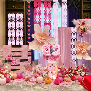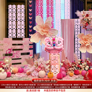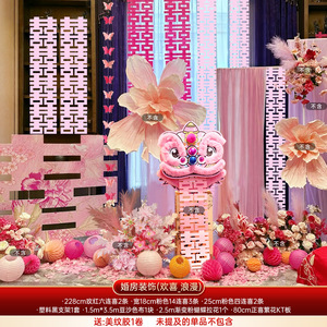 醒狮婚房布置套装粉色结婚客厅喜字kt板男方酒店婚礼晨袍背景装饰